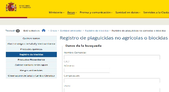 REGISTRO DE PLAGUICIDAS NO AGRÍCOLAS O BIOCIDAS DE ESPAÑA