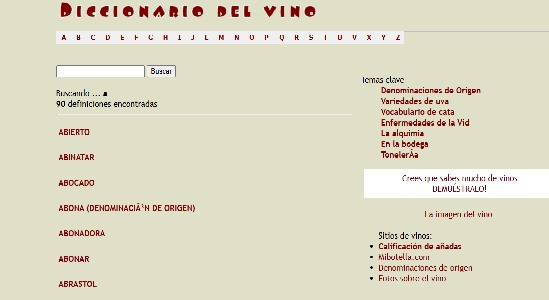 Glosario con mil términos sobre el vino y su cultura: cata, bodega, procesos químicos, denominaciones de origen, variedades, enfermedades de la uva y elaboración vinícola.