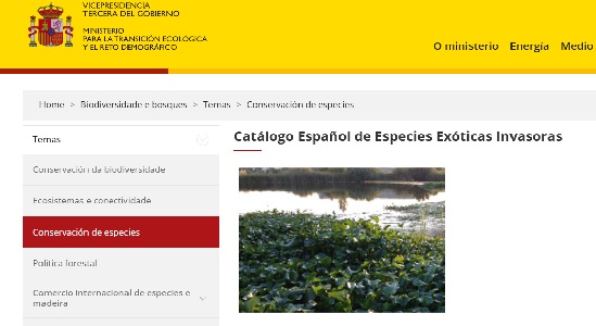 El portal del MITECO informa sobre especies exóticas invasoras en España, ofreciendo acceso al catálogo oficial, normativa aplicable y recursos para su control y conservación.
