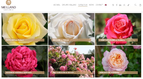 La web de Meilland ofrece diversas variedades de rosales de jardín, destacando características como resistencia, colores y fragancia. Presenta opciones para todo tipo de jardines.