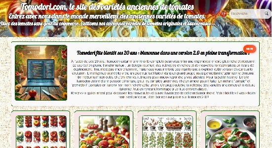 Tomodori es un sitio centrado en tomates antiguos y cultura italiana, con diseño modernizado, contenido ampliado y funcionalidades en desarrollo, mejorando la experiencia usuario.